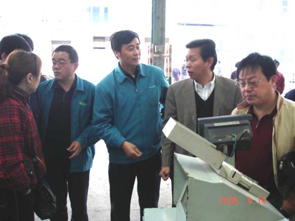 在朝陽農產品大市場參觀期間,朝陽股份副總經理汪海良、湯建興分別向杭州客人介紹了市場經營管理和使用電子磅秤交易系統情況。雙方就大市場建設和經營管理等方面進行了交流與探討。