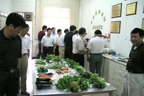 代表團首先聽取了朝陽集團總經(jīng)理楊興德的介紹,楊總經(jīng)理著重介紹了朝陽家禽市場防控禽流感的具體措施及朝陽蔬菜農(nóng)藥殘留檢測的工作情況。隨后,代表團分別到朝陽家禽市場和蔬菜批發(fā)市場實地檢查工作。