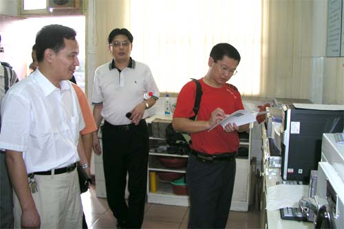 無錫朝陽集團信息中心主任陳建新、辦公室副主任鄒念祖分別向客人們介紹了集團發展規劃和集團信息化建設情況。在朝陽蔬菜市場農藥殘留檢測室,客人們向檢測中心主任王任茂詳細詢問了網絡化檢測系統的使用情況。